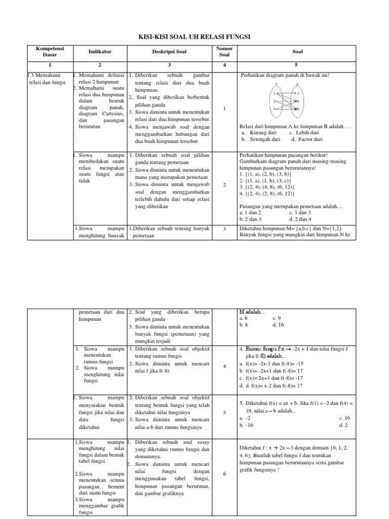 Contoh soal ulangan relasi dan fungsi beserta jawabannya rejang.